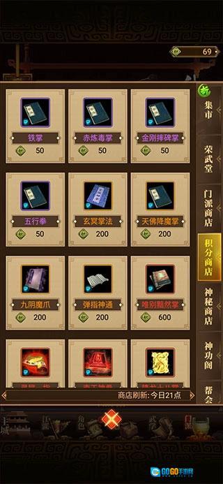 3、抽武学送积分的设计就是为了现在这种情况——哪怕你运气不好抽不到想要的武学,也能靠积分凑齐一整套。具体来说,每抽一次武学就能获得1积分,之后可以去积分商城兑换,每本武学需要50积分。