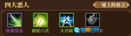 新增:多种类武学组合——善恶二使、常氏双侠、张三李四、南四奇、无量玉壁、黑风双煞、玄素双剑、四大神僧、逍遥二仙、侠客三刀