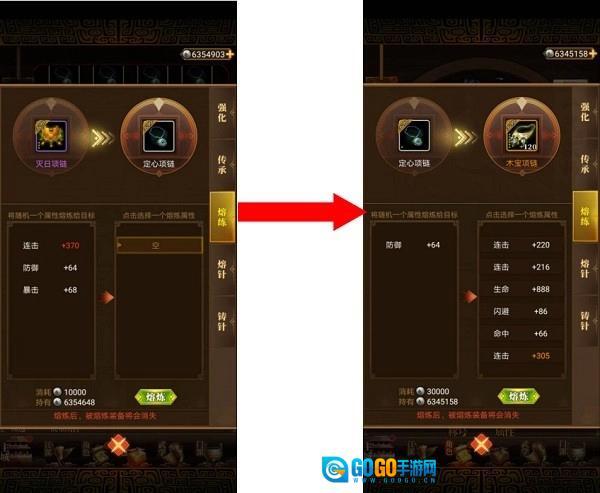 另外,装备的附加属性可以通过熔炼替换,这里分享个小技巧:如果你的主装备是A,而装备B有你想要的极品属性,别直接用B和A熔炼。可以先拿一件白色装备C,试试运气让C随机出B的极品属性;等C刷出目标属性后,再用C和A熔炼,这样A就能100%继承那个极品属性了。