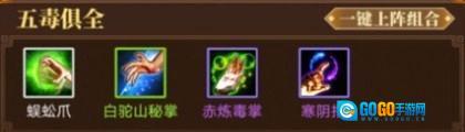 2、武功组合。之前提到有元宝为何要去抽武学,要知道武学池里虽有不少武学,但真正有用的就几个,其余大多华而不实、作用不大。挑选武学只需关注其组合效果即可。尤其要注意,前期主要有三个武学组合,若能早一天凑齐,前期的体验就会顺畅很多。
