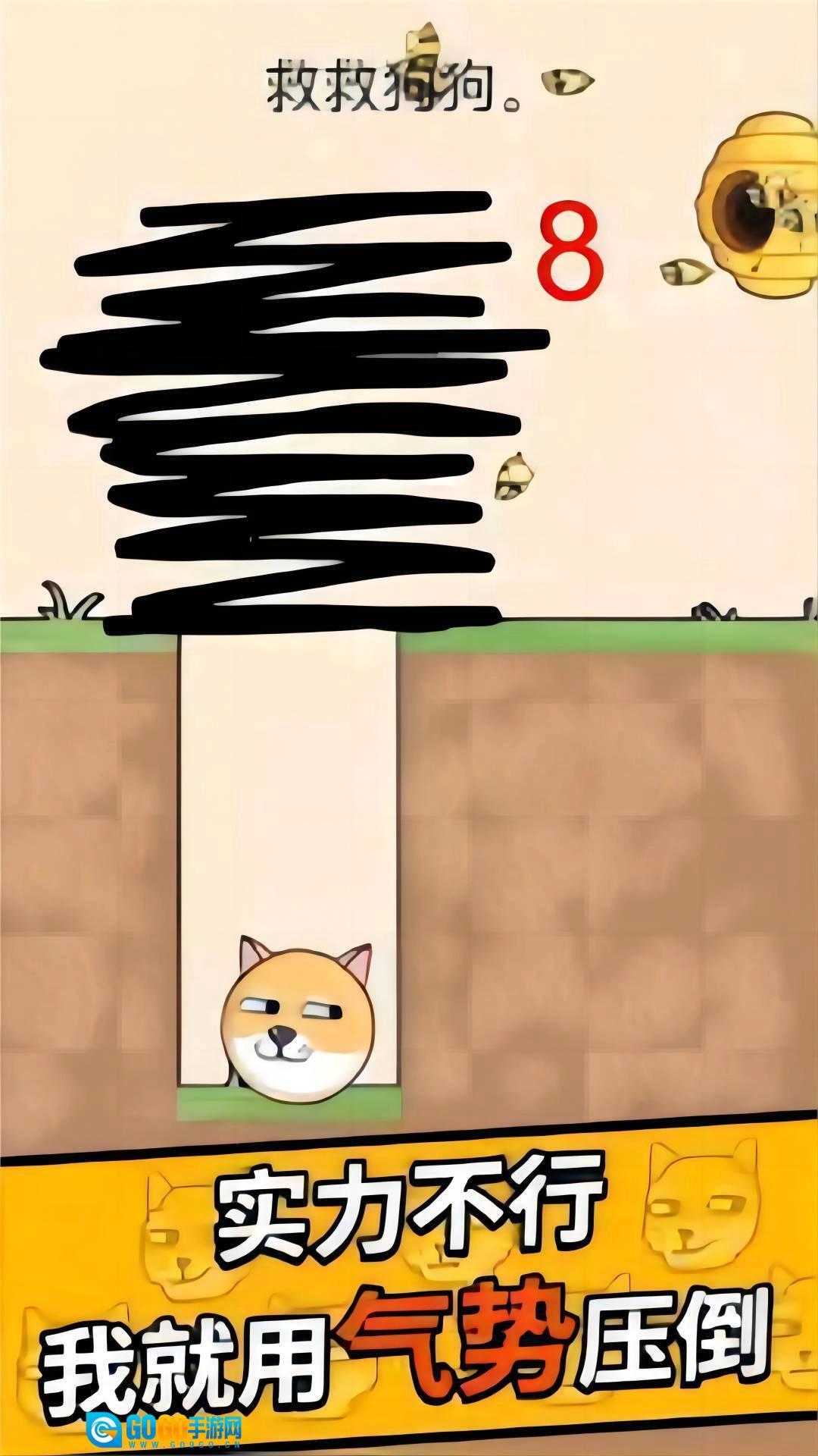 1、在限定时间内,用尽可能少的划线次数来保护狗头不被蜜蜂蛰到;