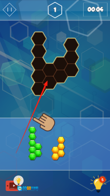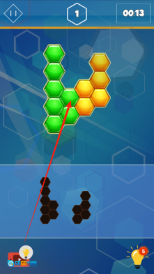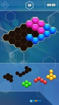 1、基础操作体系:点击屏幕可选中六边形块,滑动屏幕能调整移动方向,长按屏幕会触发旋转功能,借助这些操作的组合来完成复杂的拼接任务。整体操作简单直观,可让玩家专注于策略规划。