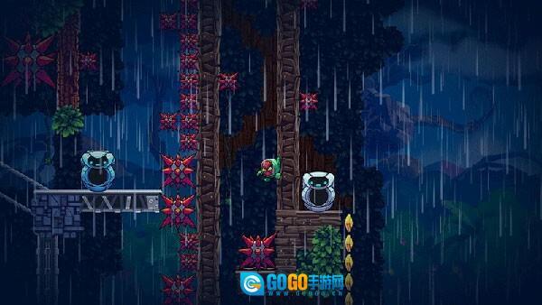游戏中的地形均非平坦,玩家需通过跳跃、飞行来移动,必要时还得攀爬;关卡里还加入了BOSS元素。