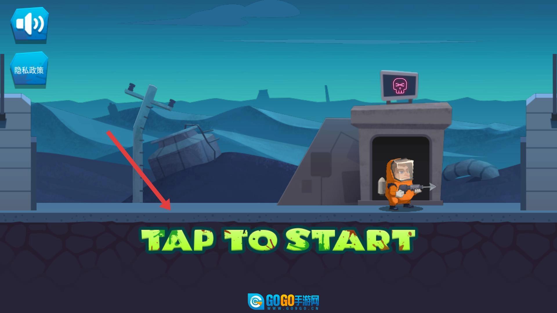 1、点击“TAP TO START”按钮进入游戏,操控身着橙色防护服的角色,在荒凉的场景里开启冒险之旅,随时准备迎接各类挑战。