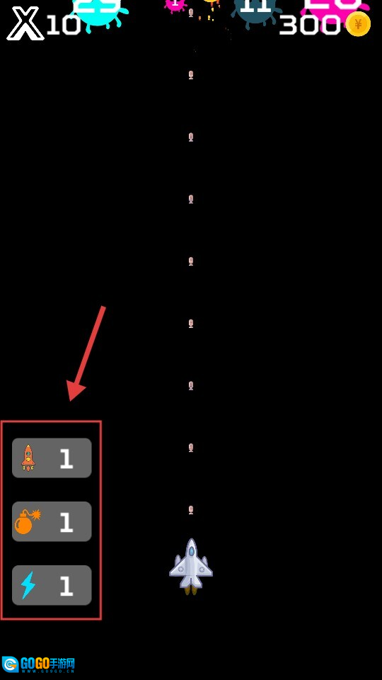 2、游戏界面左侧设有【火箭-道具】【炸弹-道具】【闪电-道具】的显示栏,请注意查看各类道具的剩余数量。