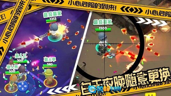 拥有卡通游戏风格的画面,还有新颖有趣的战场射击玩法,以及种类丰富多样的武器。