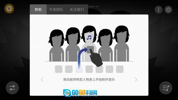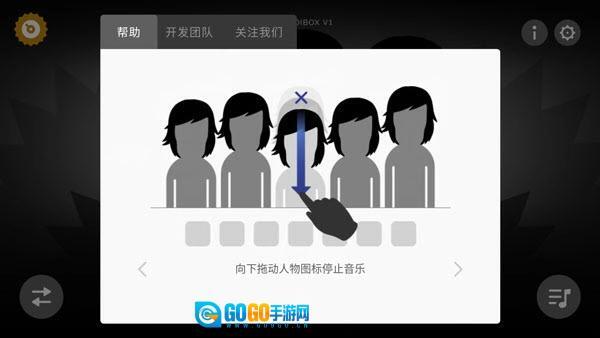 1、制作音乐时,只需把左侧的音效图标拖拽到角色身上即可,每个图标都对应着一种音色,将这些音色叠加起来就能形成完整的节奏。