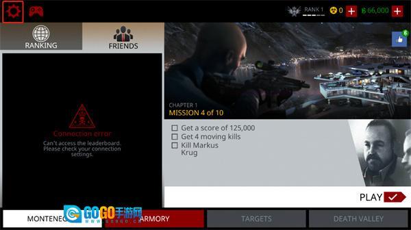 1、打开代号47狙击,点击左上角的齿轮按钮;