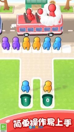 在排队乘巴士的趣味世界里,一场缤纷的配色冒险正等你开启!这里色彩绚烂,你需要迅速辨别乘客与巴士的颜色,轻轻点击屏幕,就能让同色系的小伙伴们整齐有序地排好队。随着关卡不断升级,挑战也会愈发精彩刺激——不仅要反应敏捷,还得规划好策略顺序。简单易上手的操作,却藏着无限乐趣,快加入这场妙趣横生的乘车大冒险吧!
