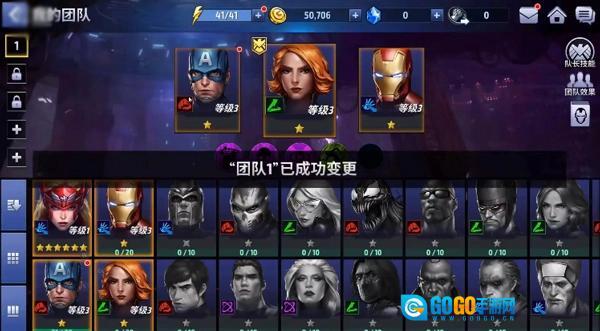 4、先挑选三位要参与战斗的漫威超级英雄,确定好团队后保存并进入游戏。
