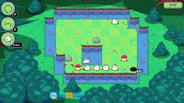 1、每个关卡的目标是让所有兔子都进入同一个洞穴,不过兔子们不能直接移动,得通过跳跃同伴来实现位置转移。