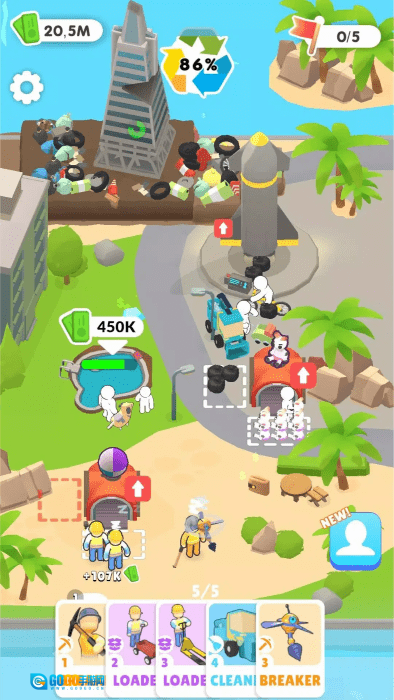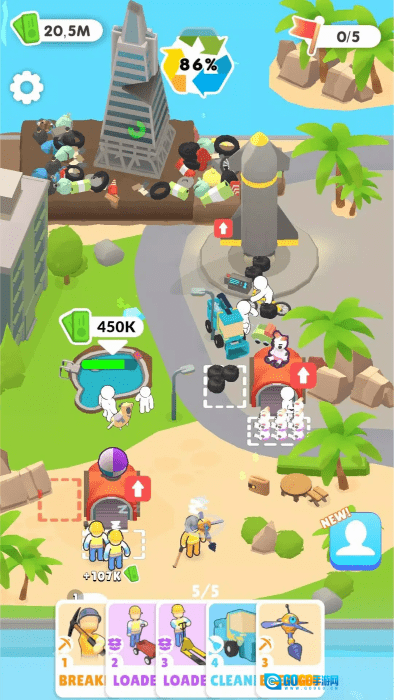 2、每个清洁任务均设有燃油与水箱的容量限制,需提前规划最优行动路线,优先处理高价值垃圾目标;升级仓库存储空间后,还能临时存放可回收改造的废弃材料。