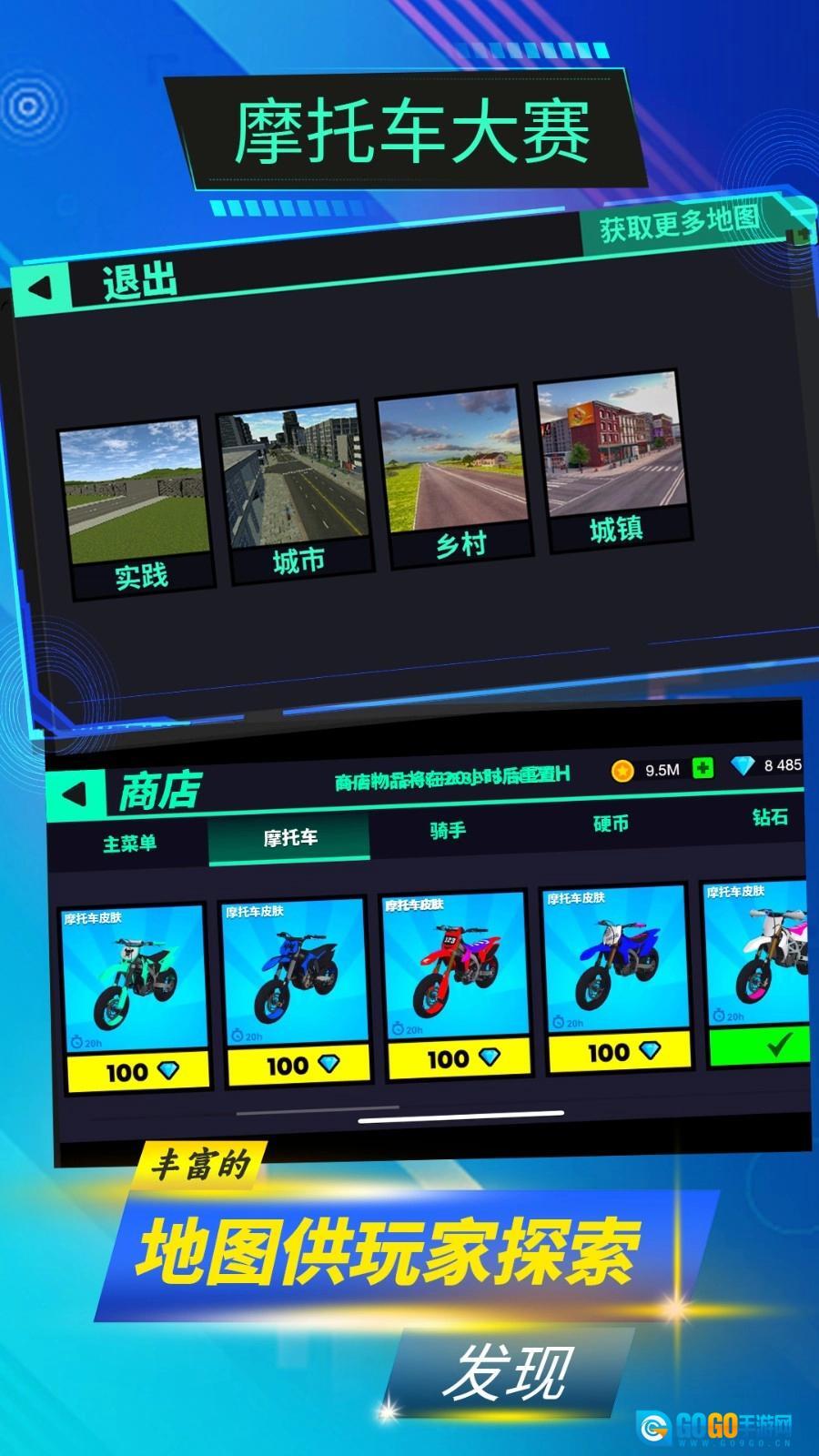 2、进入商店消耗资源购买摩托车皮肤、性能升级部件,对车辆外观和性能进行个性化改装与提升。