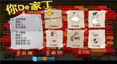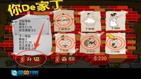 丁小小射弹弓(优先升级)+丁老妈丢拖鞋(次优先)+丁自裤丢哑铃(最末)+丁小没丢爆竹(第三优先,第6关以后使用),按这个顺序前六关绝对能过。