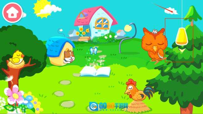 2、你会看到不少小动物,还有一座房子,点击右侧的开关,就能发现场景已经切换到黑夜了。