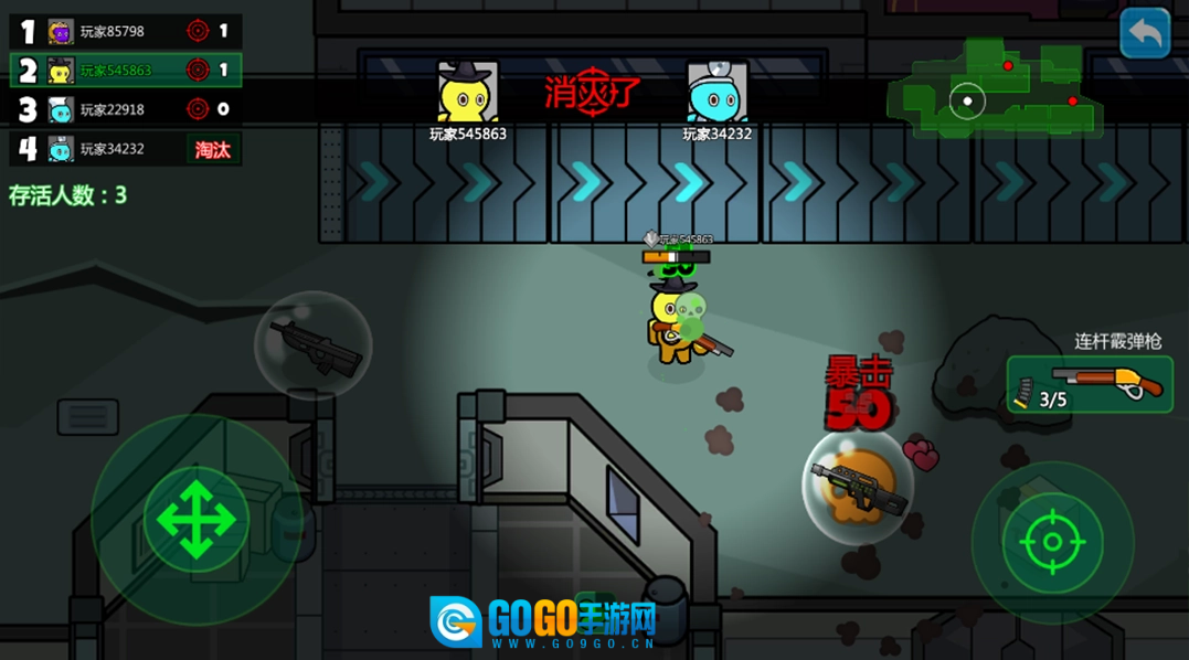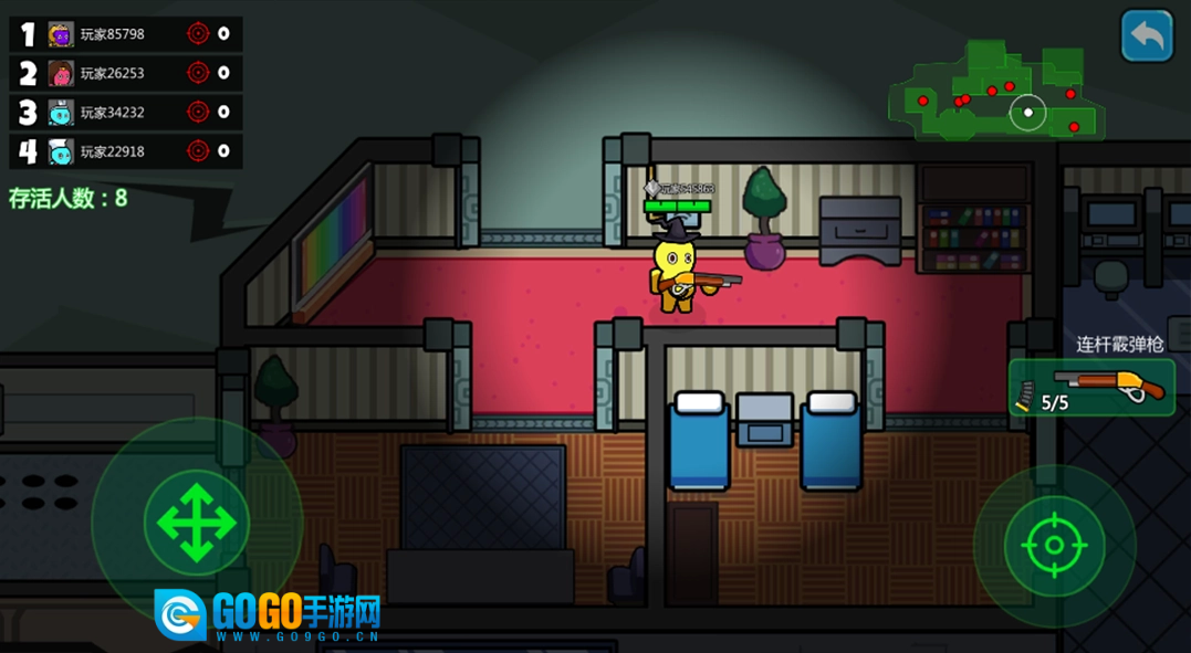 1、点击“开始战斗”进入对战场景,操控角色在战场中移动,使用武器攻击其他玩家,凭借灵活操作淘汰对手,提升存活排名。