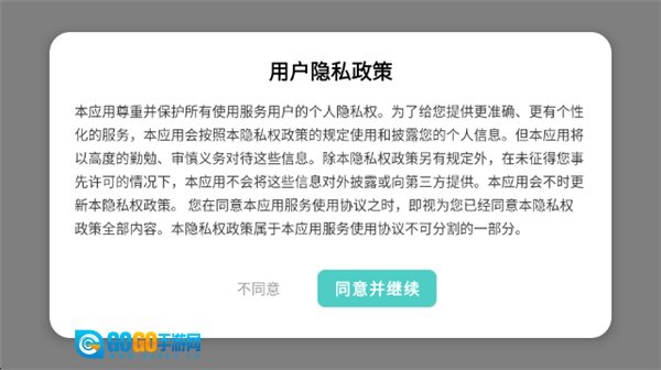 1.初次启动游戏时,需先阅读《用户隐私政策》,之后点击“同意并继续”方可进入游戏;若选择“不同意”,则无法使用游戏相关功能。