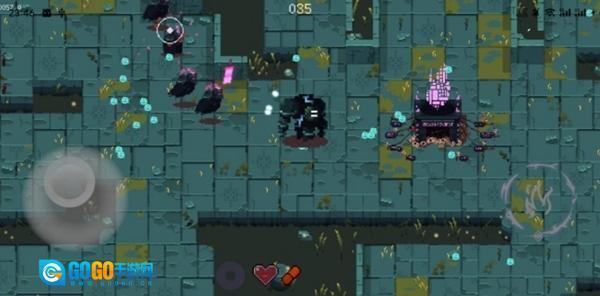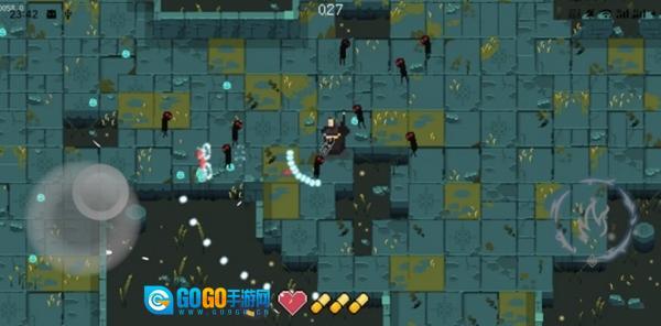 1、借助左侧的虚拟按键操控角色移动,角色会主动攻击敌人。