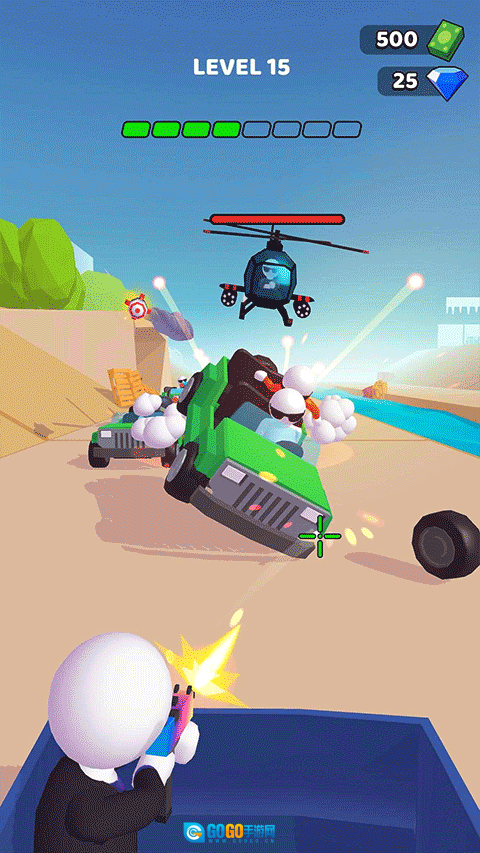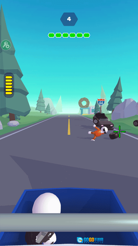2、战斗过程中可以对敌人实施射击,可瞄准头部、车轮等部位;敌人会以车辆为单位出现,每辆车有1到4人;无论击打司机还是车轮,都能直接淘汰该车辆。