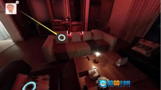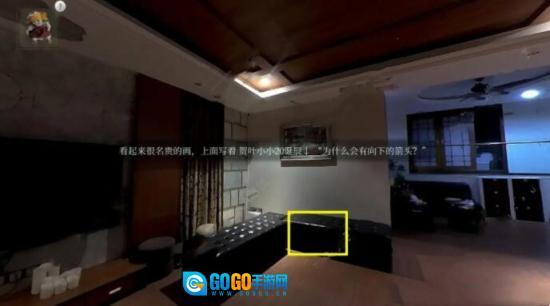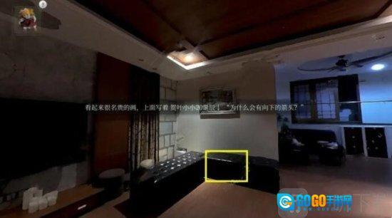 2.观察墙上悬挂的画作,按照画中箭头所指的方向,点击其下方的黑色沙发,即可获取老照片。