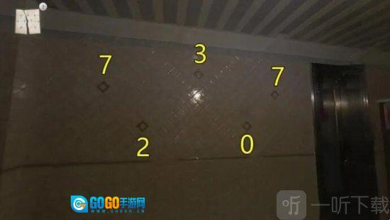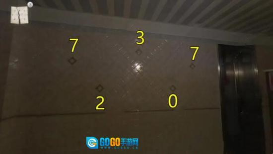 7.对比完整拼图和墙上的瓷砖,根据瓷砖的位置找出对应数字,再从左往右排列,得到密码72307。