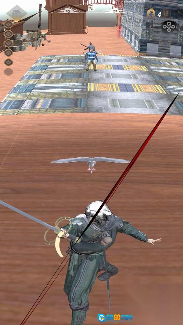 1. 我们打造了独有的武侠跑酷机制,把轻功点踏、墙壁奔跑这类动作和战斗环节巧妙融合在一起。