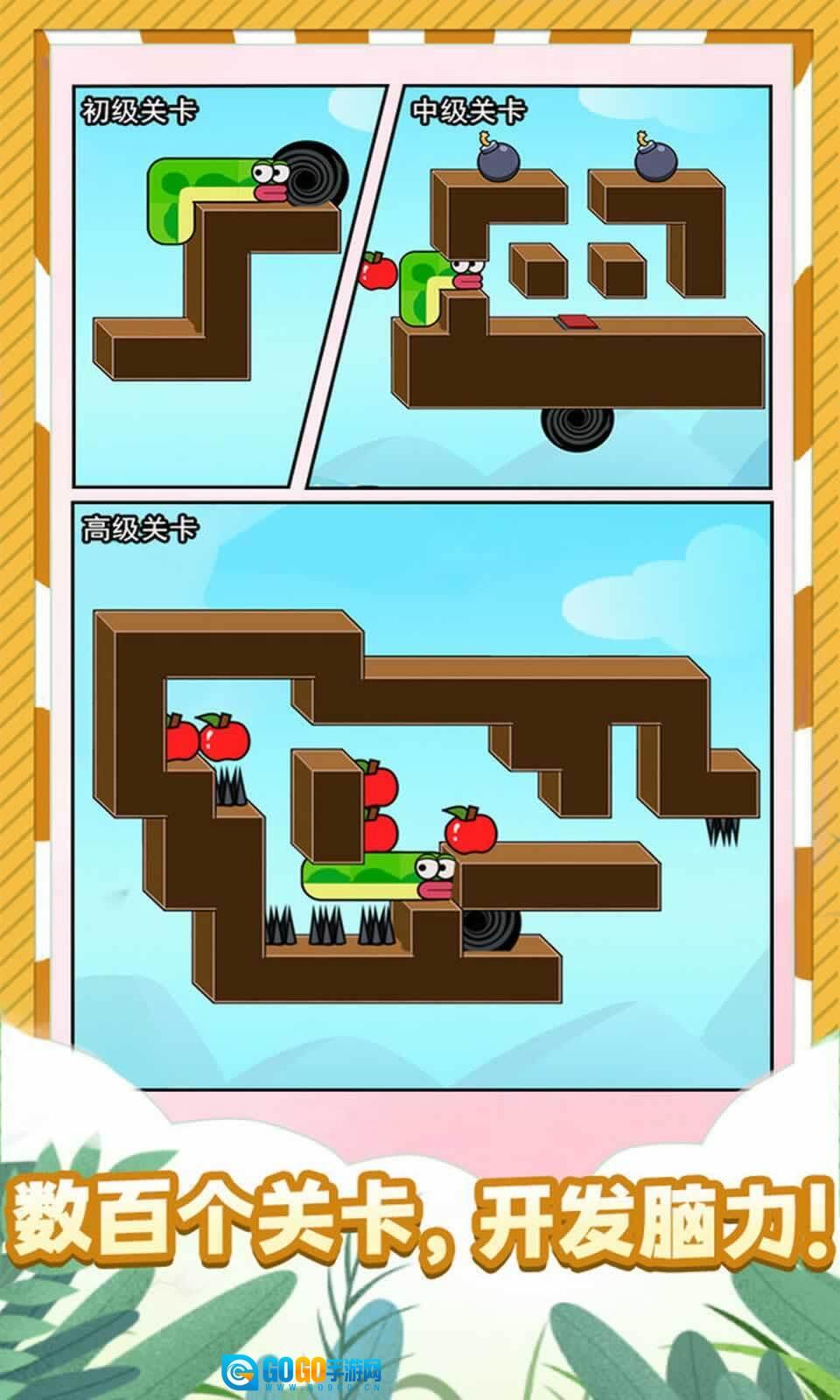 3、成长收集机制设计得既有趣又让人上瘾,每吃掉一个苹果,蛇的身体就会随之变长,这种设定能不断带来满满的成就感。