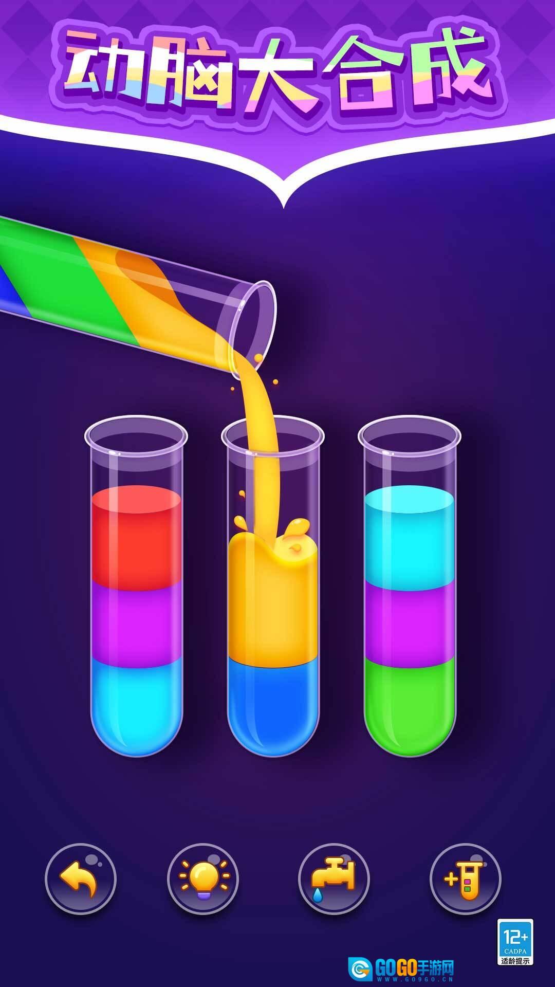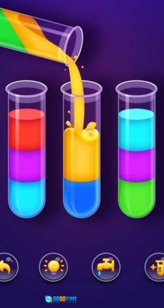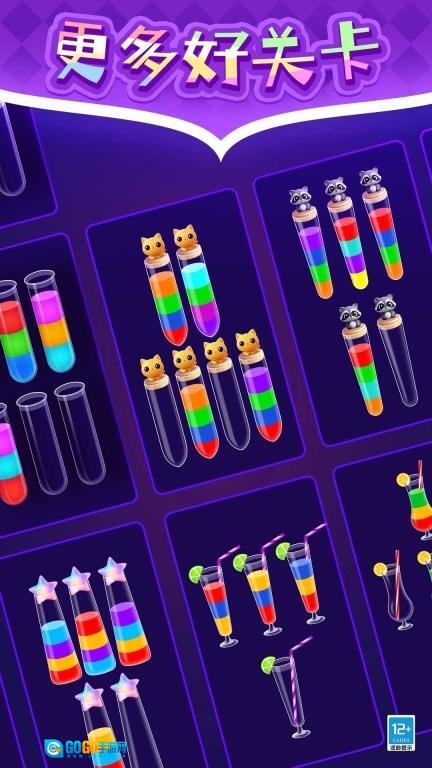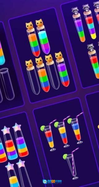 2、关卡难度会随着游戏进程逐步增加,从基础的颜色分离开始,慢慢过渡到多层混合液体的复杂情况,以此来自然地引导玩家提升分液的技巧。