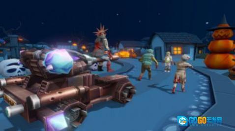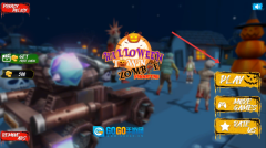 1、游戏启动后,点击PLAY按钮即可进入游戏界面。游戏的背景设定在一个充满万圣节氛围的小镇,玩家需要驾驶战车在小镇里与僵尸展开对抗。