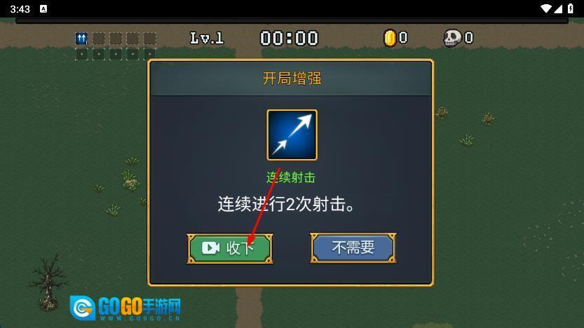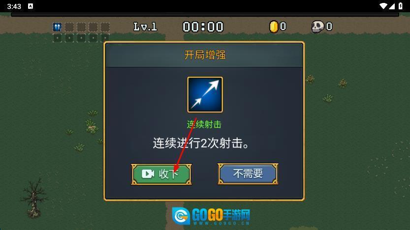 3、战斗时要留意怪物掉落的武器和工具,及时捡起来,通过消灭怪物攒下资金和经验,给角色技能升级,只要能撑过规定时间,再打败关卡BOSS就能通关了。