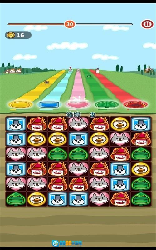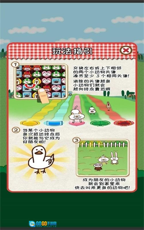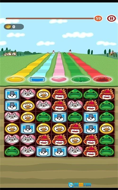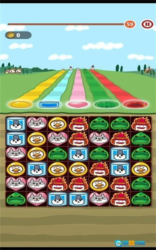 的三消玩法,让玩家在这里将各种小动物放在一起就能够消除,在每个不同的