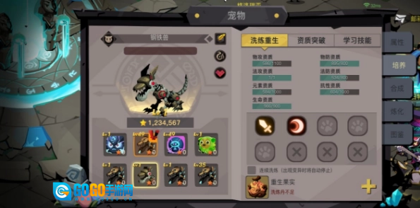 宠物能够借助战斗、喂食等途径获取经验,进而提升等级,增强自身属性。要是对宠物的属性不够满意,还可以利用“重生果实”来进行“重铸”操作。