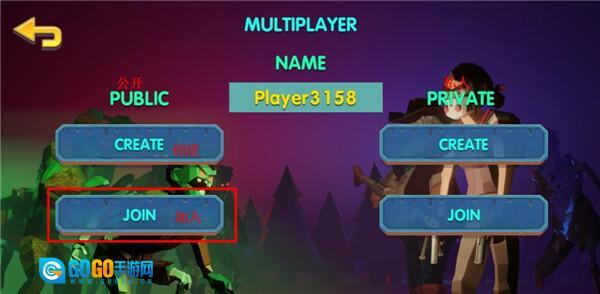 2、在公共房间与私人房间的选项中,选择创建房间或是加入房间。