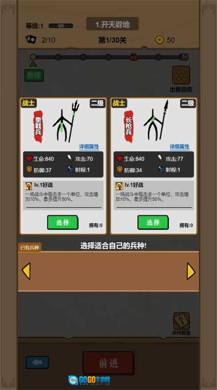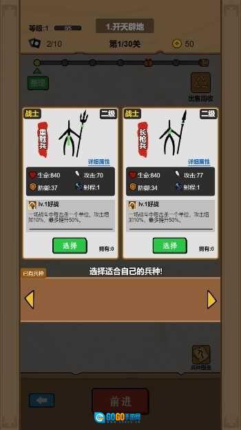 2、接着需要对兵种进行选择