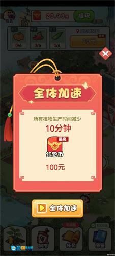 2、全体加速功能一旦开启,所有作物的生长时间将缩短10分钟,届时即可直接收获。