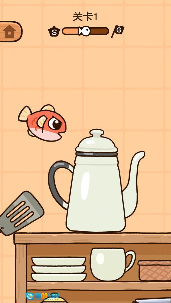 玩家在游戏里得帮忙让咸鱼成功逃脱并回到大海。点击屏幕时要留意咸鱼飞行的高度,让它贴到各种不同的障碍物上后再接着跳跃。咸鱼说不定会被锅铲、电饭锅击中,至于能不能摆脱被吃掉的命运,就看玩家的操作啦。