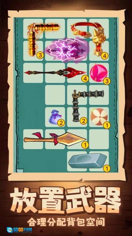 3.武器的攻击方式各有不同,在背包里所占的空间形状也不一样,玩家得合理安排背包空间,让武器组合更优化。