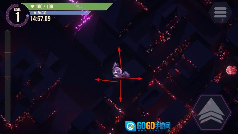 2、留意血量与弹药条的状态,避开敌人的攻击,拾取掉落的物品来恢复自身状态。
