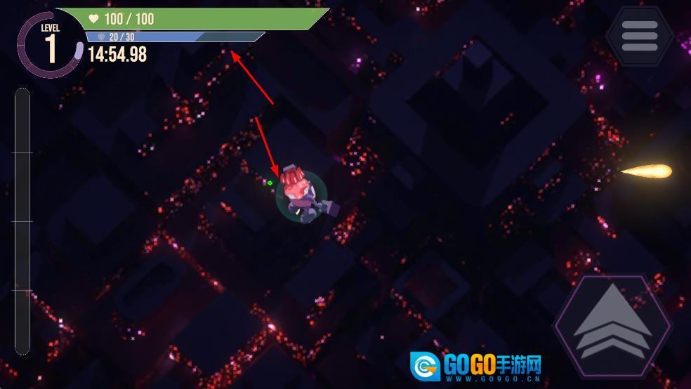 1、控制角色在LEVEL1场景中移动,对准红色敌人进行射击,通过消耗弹药来推进战斗进程。