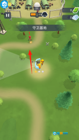 2、进入守卫基地场景后,操控黄色士兵,按照红箭头指示的方向行动,拦截前来进攻的敌人。同时要利用已建造好的单位,与士兵相互配合发起攻击,以此阻止敌人接近基地。