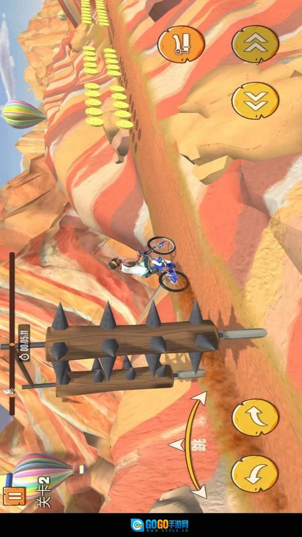 2、玩家需要在骑山地自行车冲下山的过程中完成精彩的空中特技动作,充分展现自己的能力。