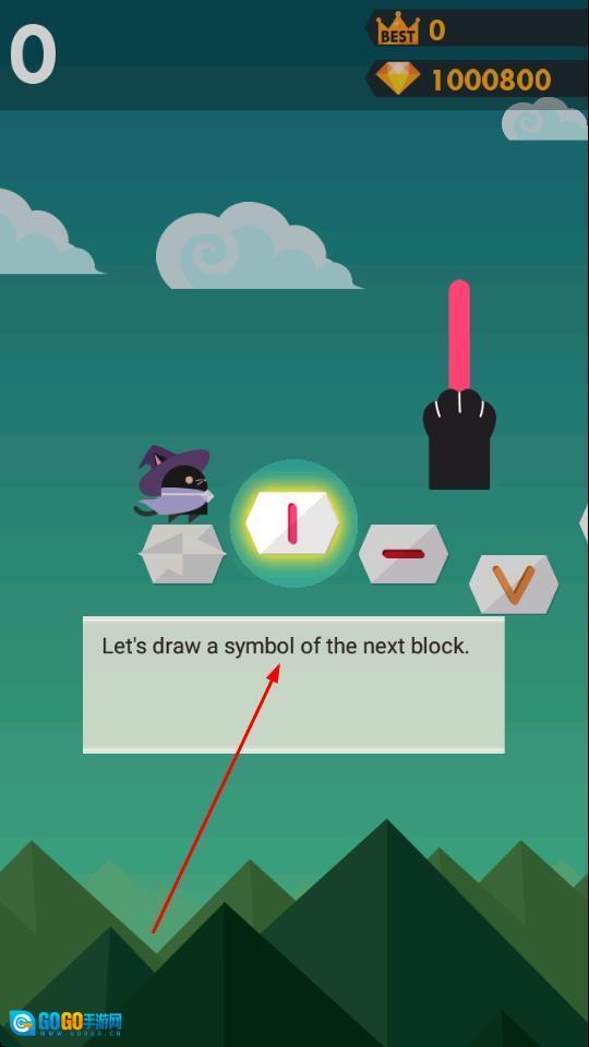 1、按照提示“Let's draw a symbol of the next block”,在绘图区域画出对应的符号,帮助黑猫巫师跳到目标方块上,就能正式开启冒险之旅了。
