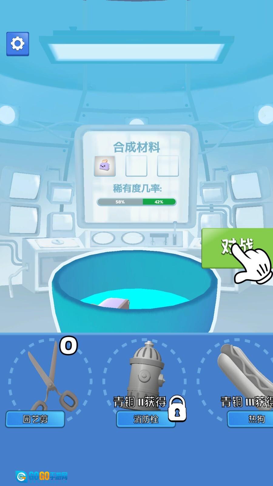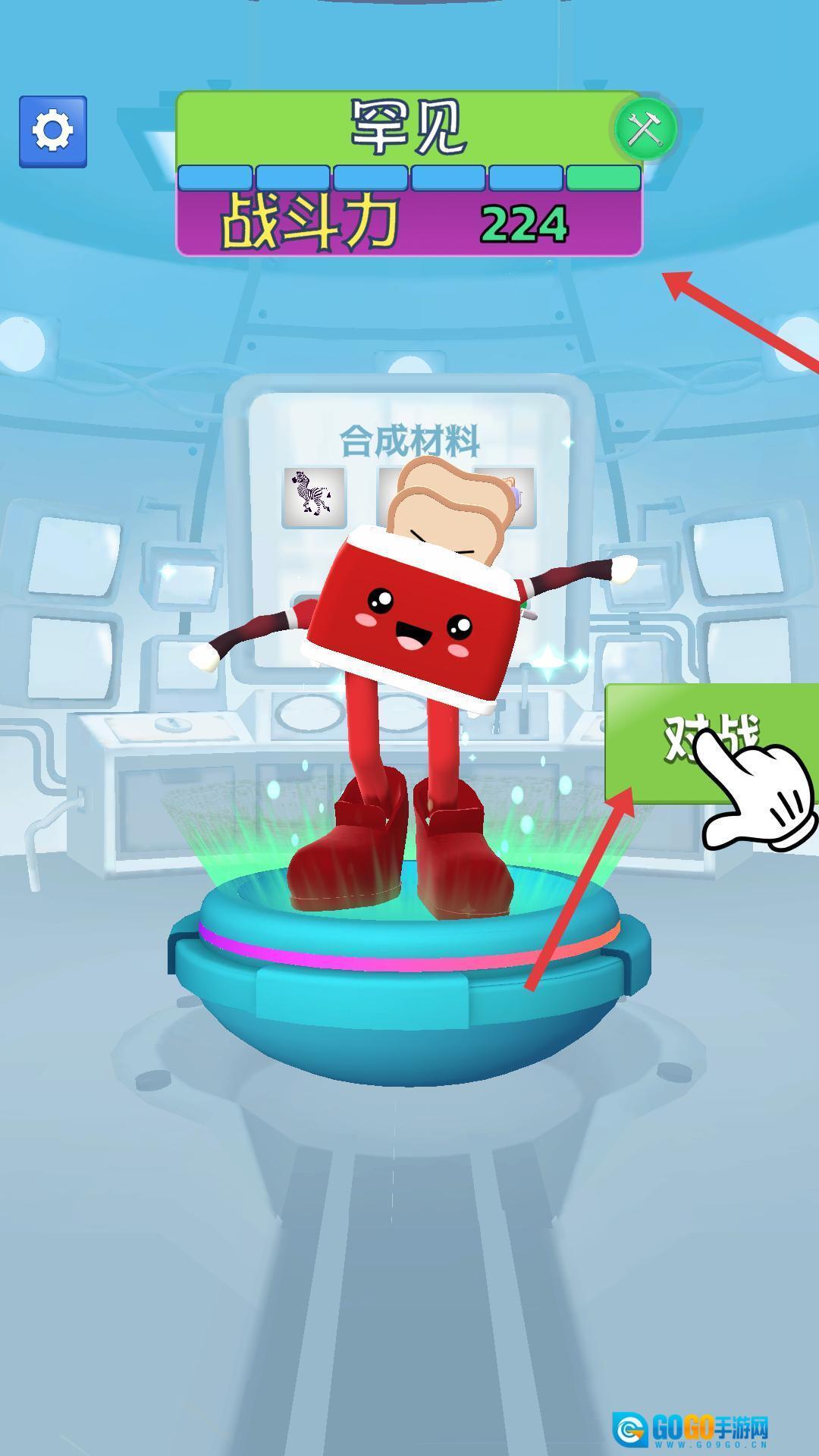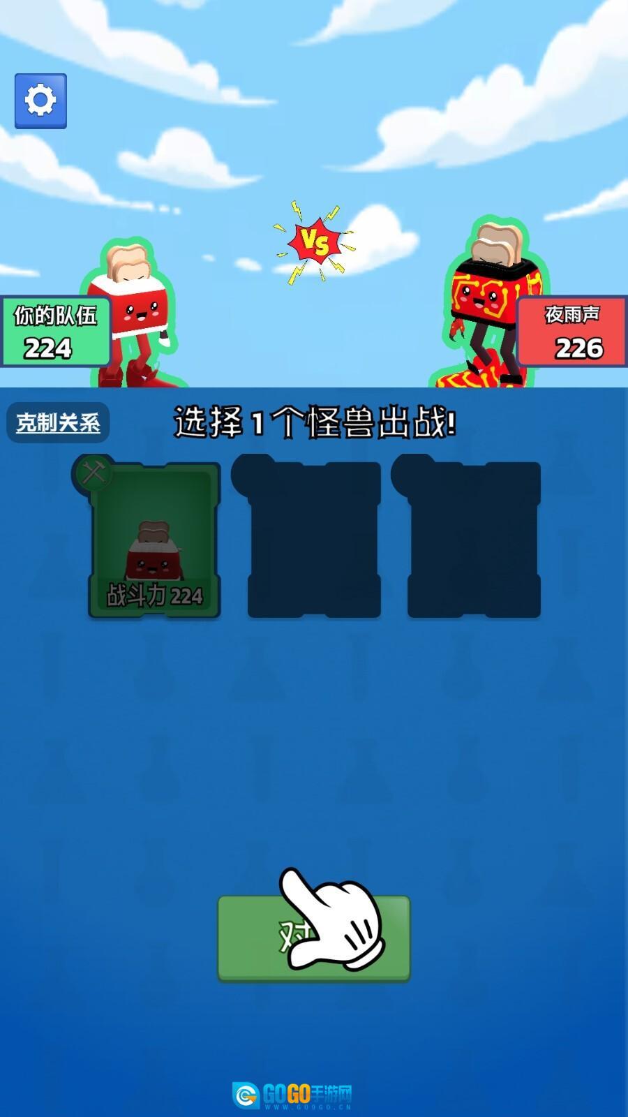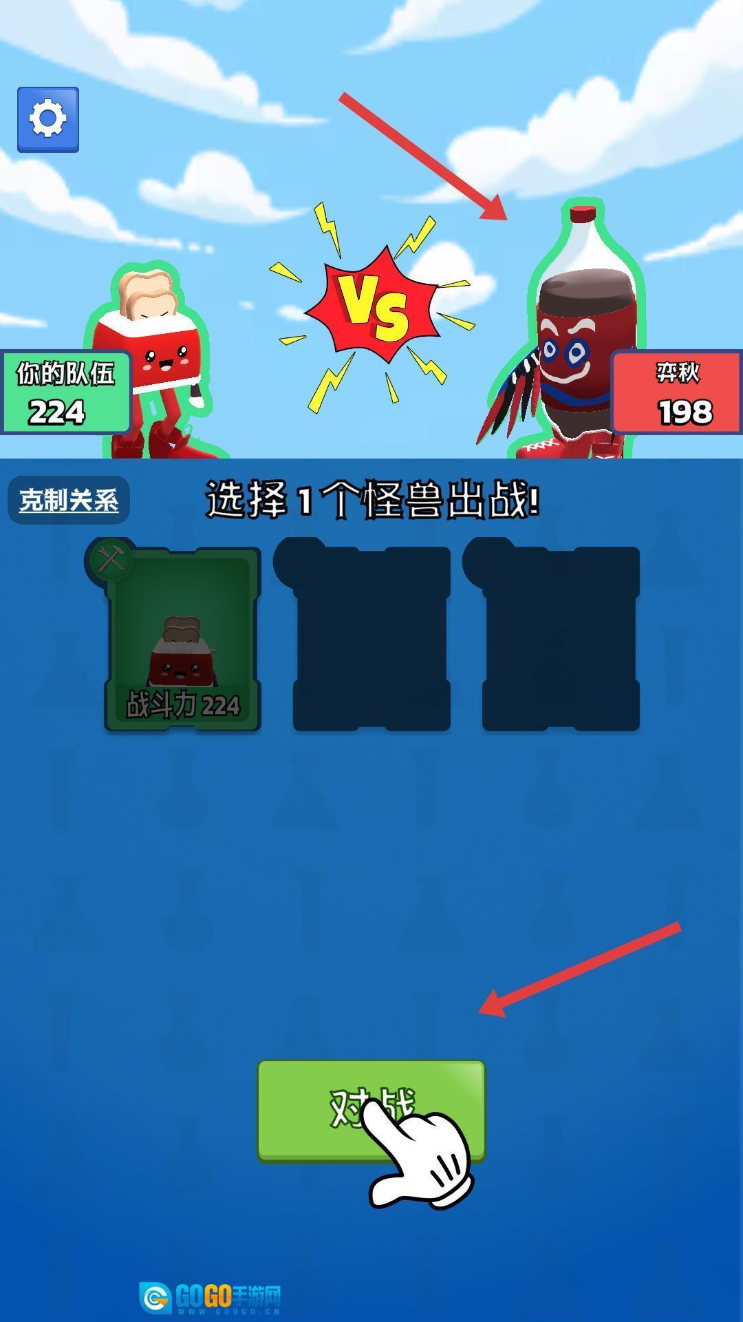 3、合成成功后,会出现合成的怪兽,界面会展示该怪兽的稀有度与战斗力,点击对战按钮,即可开启对战。