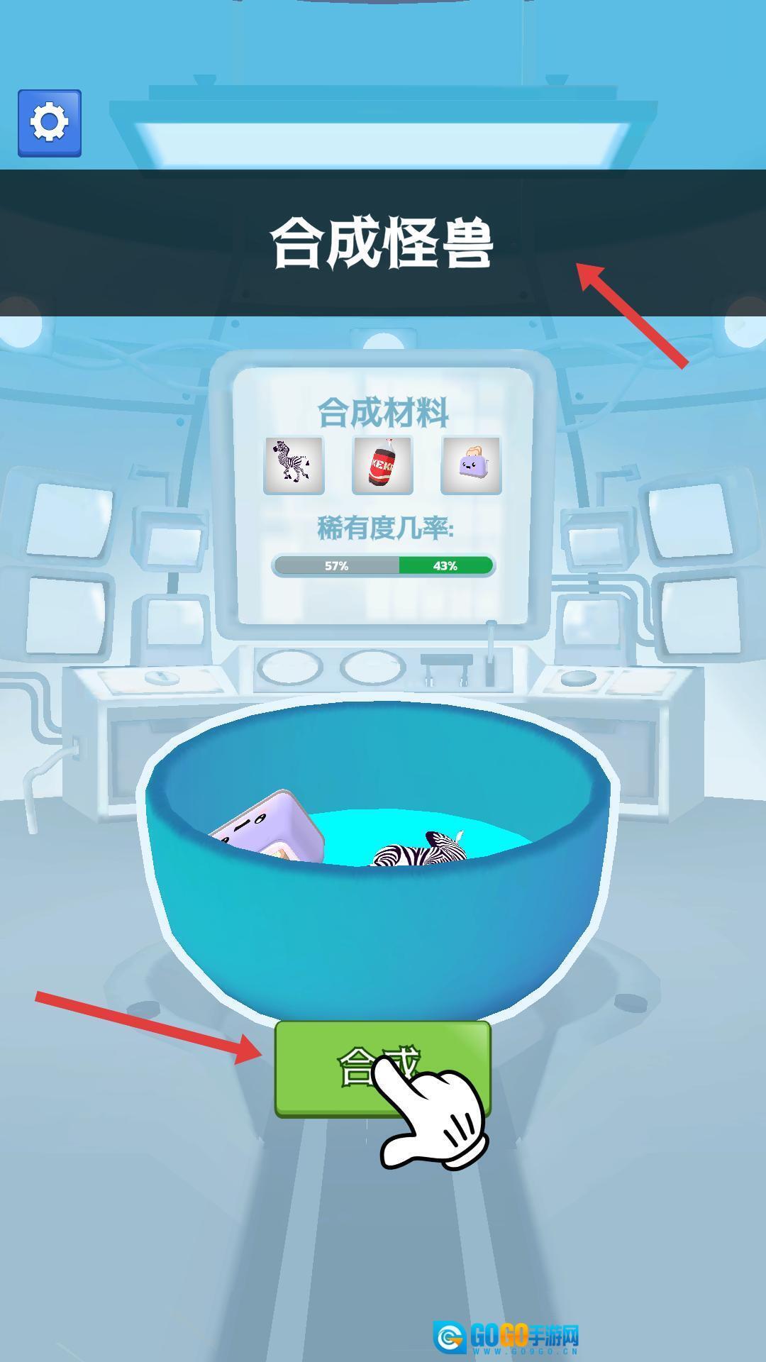 2、选好物品后,界面会呈现合成怪兽的相关内容,下方设有绿色的合成按钮,点击该按钮,即可把选中的物品合成为怪兽。