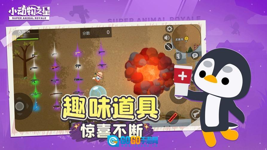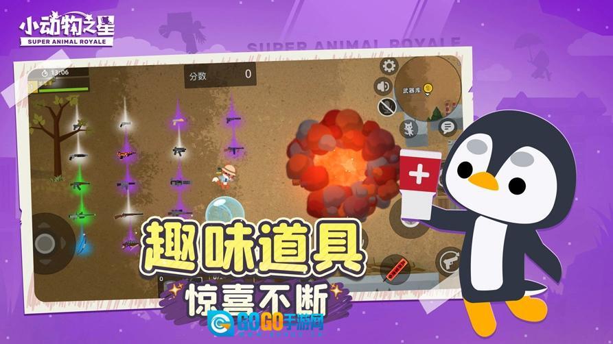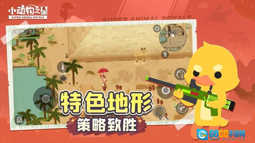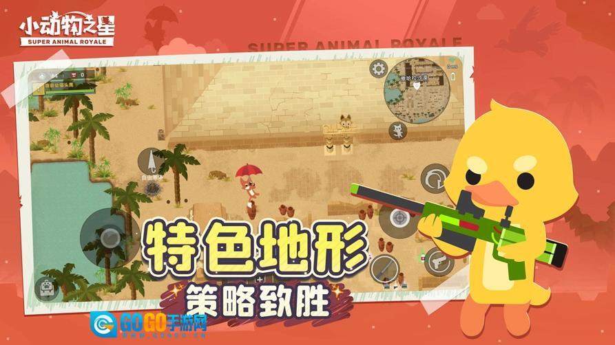 这是一款采用可爱卡通画风打造的动作射击游戏。《小动物之星》推出了全新的动物吃鸡玩法,提供几十种超萌小动物供玩家解锁,让你能完成更多趣味挑战。游戏支持快速匹配对手与队友,在多样环境里开启紧张刺激的战斗。