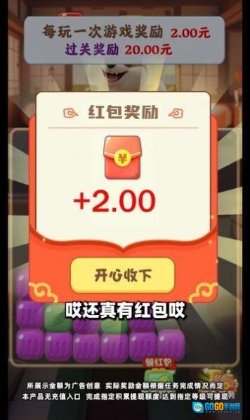 旺财快来是一款轻松有趣的三消游戏,玩法和开心消消乐类似,不过它有个特别之处——能赚金币,攒到一定数量就能兑换现金,对想在空闲时赚点零花钱的玩家挺友好的。