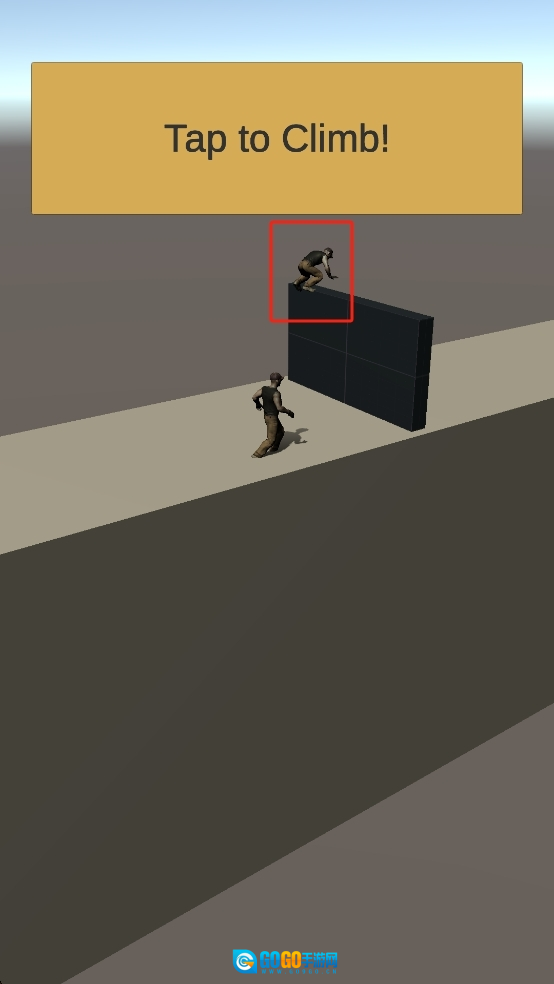 2、按照屏幕上方出现的攀爬提示,连续点击屏幕来控制选中的角色,让它通过攀爬动作翻越前方的墙体,一步步越过障碍。