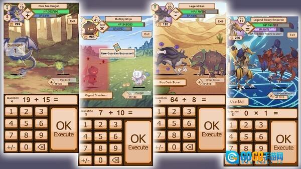 1.战斗系统运用实时解题机制,敌人发起攻击前会呈现数学题目,只有正确解答才能打断对方的攻势。