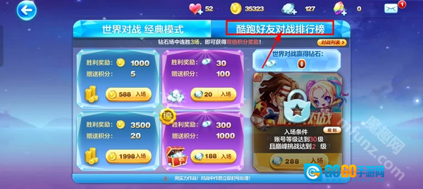 3、进入后选择上方的【酷跑好友对战排行榜】;