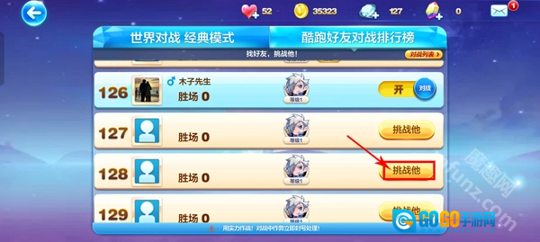 4、选择想挑战的好友,点击【挑战他】即可。
